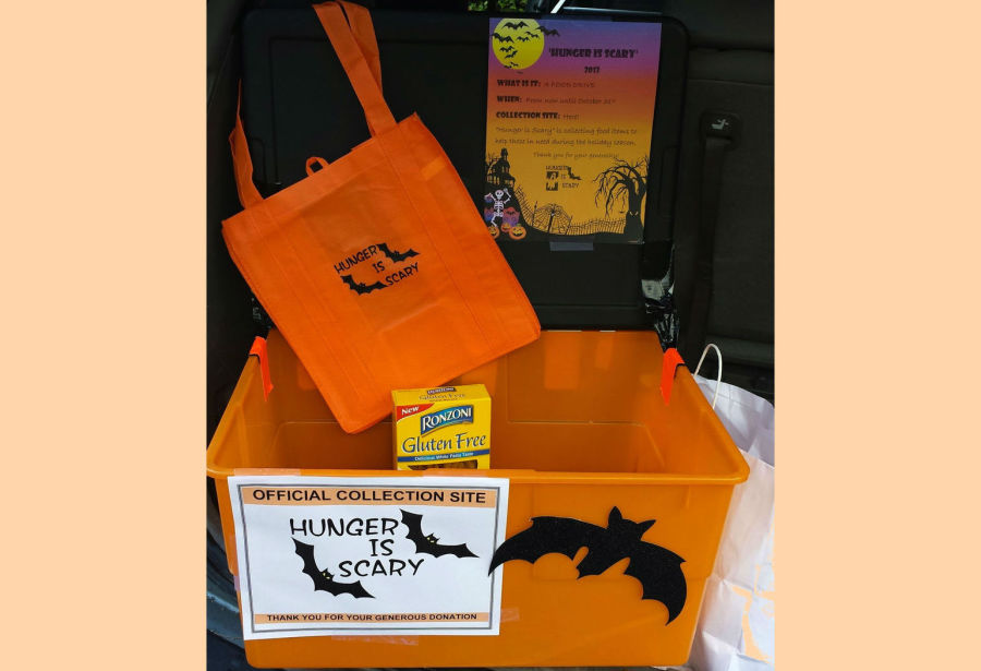 Deliver brown bags (ask your local grocery store for a few) and type a fun "You've Been Ghosted" message with a small treat, and ask your neighbor or friend to fill the bag with items to donate to your local pantry! Ask them to drop them off in one of the Hunger Is Scary donation sites around town.
